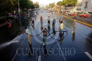 MÉXICO, D.F., 07ENERO2010.- Integrantes de Comercio de la Romería de fiestas de fin de año, realizaron labores de limpieza en la zona de la Alameda Central donde estuvieron colocados los Puestos de Reyes Magos, Santa Claus y la feria que fue retirada este 6 de Enero FOTO: LUIS CARBAYO/CUARTOSCURO.COM