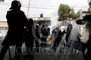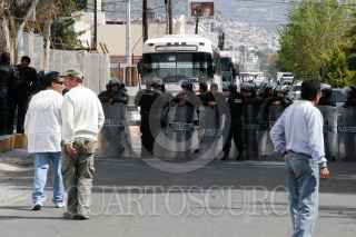 PACHUCA, HIDALGO, 07ENERO2010.- Unos 300 policías federales resguardaron la subestación de Santa Julia, en donde integrantes del SME mantienen un plantón. FOTO: MANUEL SALGADO/CUARTOSCURO.COM