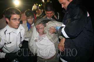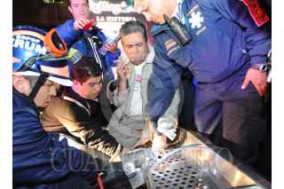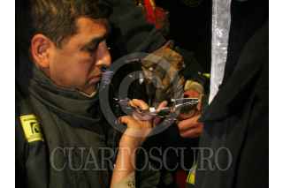 MÉXICO, D.F., 08ENERO2010.- Raúl Infante Savedra de 42 años, en aparente estado de ebriedad, permaneció inmovilizado de su mano izquierda al atorarse tres de sus dedos en una banca del parabus ubicado en Eje 5 Sur avenida San Antonio en la colonia San Pedro de los Pinos. En el rescate participaron bomberos, paramédicos y policias capitalinos. FOTO: LUZ ACEVDO/CUARTOSCURO.COM