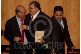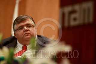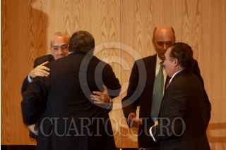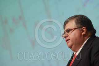 MÉXICO, D.F., 08ENER02010.- Agustin Carstens Carstens, Gobernador del Banco de México, abraza emotivamente a José Anfel Gurria Presidente de la OCDE al termino de su intervención titulada "La Politica Monetaria y la Recuperación Económica en 2010 dentro del Seminario de Perspectivas Económicas 2010 ", realizado en prestigiada universidad de la Ciudad de México. FOTO: SÁSHENKA GUTIÉRREZ/CUARTOSCURO.COM