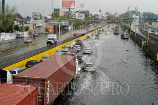 MÉXICO, D.F., 08ENERO2010.- A causa de las lluvias que han caído durante la presencia del frente frió número 22 en el país, se registraron inundaciones en la zona del Boulevard Puerto Aéreo a la altura del Eje 1 Norte Hangares en perímetro de la delegación Venustiano Carranza lo que causo gran caos en las vialidades. FOTO: LUIS CARBAYO/CUARTOSCURO.COM