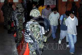 VERACRUZ, VERACRUZ, 09ENERO2010.- En acción conjunta personal de la Secretaria de Marina y Defensa Nacional, acompañados por la Policía Estatal y la Policía Federal implementaron hoy a las 2.30 horas el traslado de cientos de internos que permanecían detenidos en el Penal Ignacio Allende del Puerto de Veracruz. Se especula que esta cuerda de reos obedece a la filmación de una película, que realizara el actor y director de cine Mel Gibson durante este año en dicho Centro de Readaptación Social. FOTO: FÉLIX MÁRQUEZ/CUARTOSCURO.COM