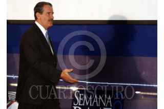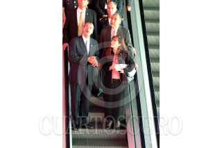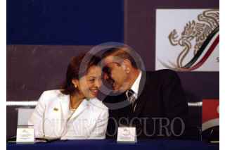 Vicente Fox Quesada y Yeidckol Polevnsky, presidenta de la CANACINTRA al termino de la inauguración del PYMES 2003, en donde también se llevó a cabo un convenio de fortalecimiento al mercado interno en compras de gobierno al as micro, pequeñas y medianas empresas del país. FOTO: Nelly Salas/CUARTOSCURO.COM