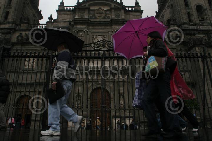 MÉXICO, D.F., 09ENERO2010.- La masa de aire polar proveniente del norte del país, ha provocado lluvia y bajas temperaturas en la ciudad. El Servicio Meteorológico Nacional recomienda usar abrigos y sombrillas. FOTO: ENRIQUE ORDÓÑEZ/CUARTOSCURO.COM