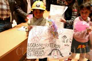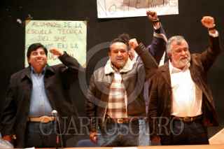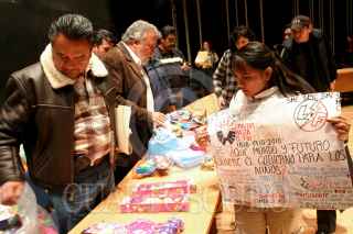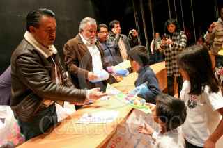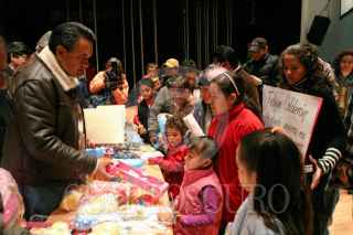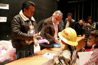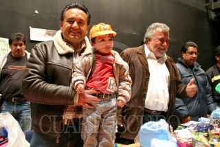MÉXICO, D.F., 10ENERO2010.- Martín Esparza, líder del Sindicato Mexicano de Electricistas (SME), acompañado del diputado federal Alejandro Encinas realizaron una entrega de juguetes a hijos de trabajadores de la extinta LyFC a cambio de carteles de resistencia que se realizo en el auditorio de la sede sindical del SME. FOTO: RODOLFO ANGULO/CUARTOSCURO.COM