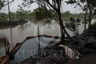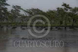 CÁRDENAS, TABASCO, 10ENERO2010.- Un derrame de crudo provoca severos daños en la ecología: manto acuífero, vida silvestre y árboles frutales de la zona. Dicho acontecimiento se registra en los alrededores de la Batería 7, Activo 5 Presidentes que se ubica en el poblado Sánchez Magallnes, y en donde los trabajos de limpieza que pudieran haber realizado el personal de Petróleos Mexicanos se dejaron de hacer por razones desconcidas. FOTO: MARCO POLO GUZMÁN HERNÁNDEZ/CUARTOSCURO.COM