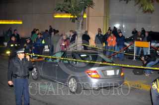 MÉXICO, D.F., 10ENERO2010.- Un sujeto de origen Libanés, de nombre Manuel Ceades Gutiérrez de 31 años, perdio la vida abordo de su auto Mercedes Benz de color gris con placas MCS-25-91 que se encontraba estacionado frene a la Plaza comercial Antara, ubicada en Ejercito Nacional a la altura de la calle Moliere en Polanco, perímetro de la Delegación Miguel Hidalgo. Este se encontraba discutiendo por cuestiones de dinero abordo del auto con su hermano de nombre José Ceades de 28 años, por lo que saco una arma 9 mm y le disparo en por lo menos una ocasión en la cabeza, al lugar arribo la unidad número 14 de Cruz Roja para certificar la muerte de este sujeto y peritos de la agencia numero 9 de la procuraduría para realizar el levantamiento del cadáver. FOTO: LUIS CARBAYO/CUARTOSCURO.COM