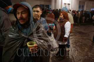 MÉXICO, D.F., 10ENERO2010.- Cientos de personas en situación de calle acuden esta noche al albergue de Coruña del Instituto de Asistencia e Integración Social (IASIS) donde se les brinda alimentos cobijas y un espacio para pasar la noche; Este albergue luce lleno en estos días debido al intenso frío que ha provocado la entra del frente frio número 22. FOTO: SÁSHENKA GUTIÉRREZ/CUARTOSCURO.COM