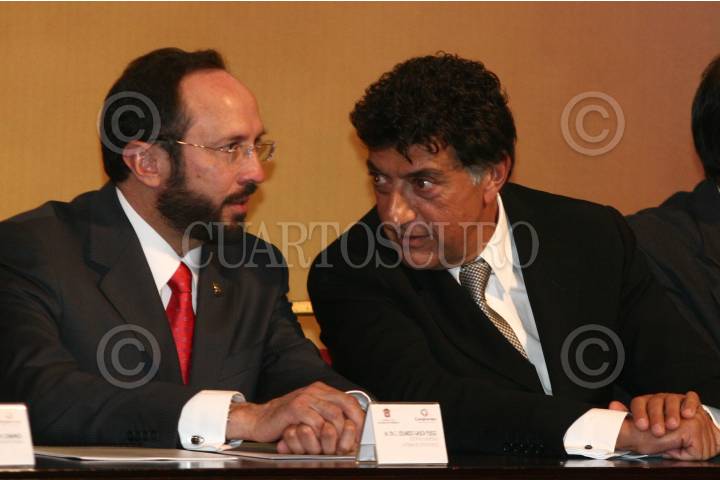 TOLUCA, ESTADO DE MÉXICO, 11ENERO2010.- José Narro Robles, rector de la UNAM conversa con Enrique Peña Nieto, Gobernador del Estado de México, durante la entrega de Premio Estatal de Ciencia y Tecnología 2009 que les fueron otorgados a siete investigadores del Estado de México en las categorias; Agropecuaria y Bíotecnología, Ciencias de la Salud, Ciencias Naturales y Exactas, Ingenieria y Tecnologias y Ciencias Sociales y Humanidades, llevado acabo en el Palacio de Gobierno de la entidad. FOTO: SAÚL LÓPEZ/CUARTOSCURO.COM