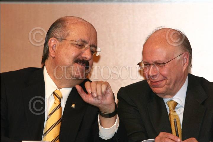 TOLUCA, ESTADO DE MÉXICO, 11ENERO2010.- José Narro Robles, rector de la UNAM conversa con Enrique Peña Nieto, Gobernador del Estado de México, durante la entrega de Premio Estatal de Ciencia y Tecnología 2009 que les fueron otorgados a siete investigadores del Estado de México en las categorias; Agropecuaria y Bíotecnología, Ciencias de la Salud, Ciencias Naturales y Exactas, Ingenieria y Tecnologias y Ciencias Sociales y Humanidades, llevado acabo en el Palacio de Gobierno de la entidad. FOTO: SAÚL LÓPEZ/CUARTOSCURO.COM
