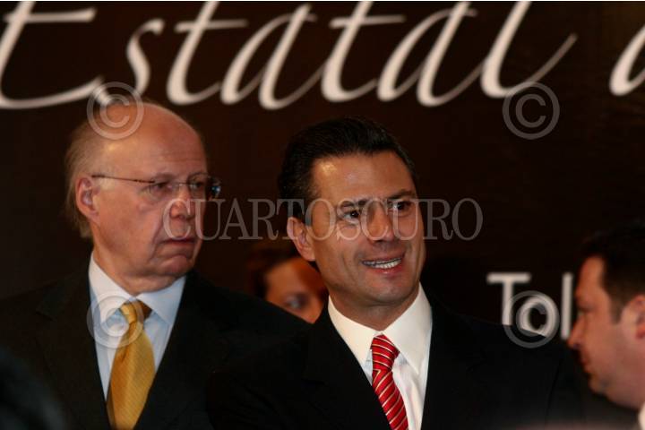 TOLUCA, ESTADO DE MÉXICO, 11ENERO2010.- José Narro Robles, rector de la UNAM conversa con Enrique Peña Nieto, Gobernador del Estado de México, durante la entrega de Premio Estatal de Ciencia y Tecnología 2009 que les fueron otorgados a siete investigadores del Estado de México en las categorias; Agropecuaria y Bíotecnología, Ciencias de la Salud, Ciencias Naturales y Exactas, Ingenieria y Tecnologias y Ciencias Sociales y Humanidades, llevado acabo en el Palacio de Gobierno de la entidad. FOTO: SAÚL LÓPEZ/CUARTOSCURO.COM