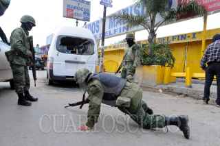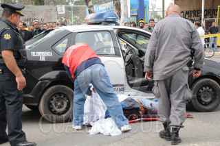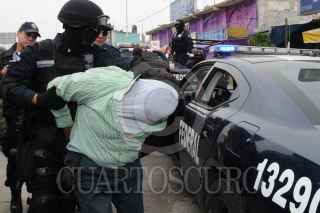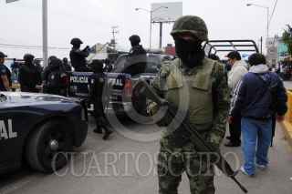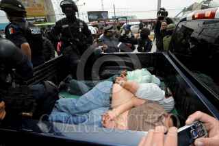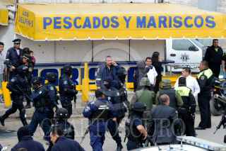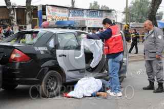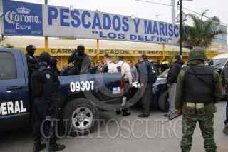 COACALCO, ESTADO DE MÉXICO 11ENERO2009.- Un oficial de la policía Municipal de Coacalco, perdio la vida durante un enfrentamiento entre presuntos secuestradores y policias. Los cuales al verse rodeados les arrojaron granadas, dejando a un elemento sin vida los hechos ocurrieron frente al restaurante de Mariscos con razón social “Los Delfín I” ubicado en avenida José López Portillo a la altura del Eje 8 en Coacalco. Escapando un delincuente en una de las unidades de los policías Municipales el cual fue alcanzado calles adelante abatiéndolo a tiros en la unidad. Al lugar arribaron elementos del Ejercito Mexicano y para resguardar el lugar en donde fueron detenidos tres presuntos secuestradores y dos camionetas una tipo Urban y una Ford Lobo de reciente modelo. FOTO: MARIO NULO/CUARTOSCURO.COM