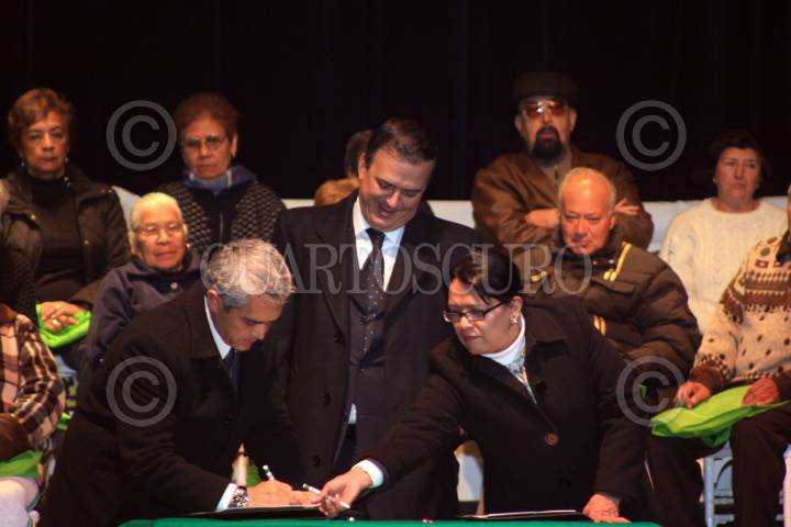 MÉXICO, D.F., 12ENERO2010.- Marcelo Ebrard Casaubon, Jefe de Gobierno de la Ciudad de México, encabezó la entrega de Tarjetas de Pensión Alimentaria a Adultos Mayores. FOTO: CUARTOSCURO.COM