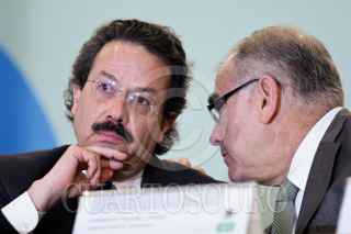 MÉXICO, D.F., 12ENERO2010.- Juan Molinar Horcasitas, secretario de Comunicaciones y Transportes, y Humberto Treviño, subsecretario de Transporte, ofrecieron una conferencia de prensa para dar los pormenores de la investigación que realiza la dependencia a su cargo sobre el accidente de helicóptero en el que murió el empresario Moisés Saba y familiares. FOTO: ISAAC ESQUIVEL/CUARTOSCURO.COM