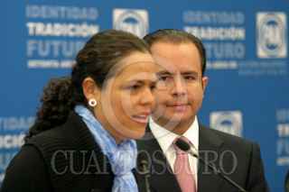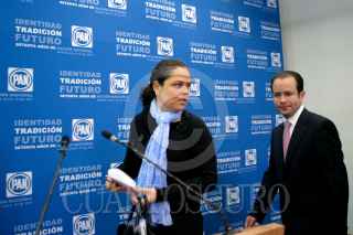 MÉXICO, D.F. 13ENERO2010.- Mariana Gomez del Campo, presidenta del PAN-DF y Cesar Nava, presidente del PAN durante una conferencia de prensa en donde anunciaron que organizaran una consulta ciudadana del 17 al 24 de enero para conocer la opinión de la sociedad en torno a la aprobación de los matrimonios gay y la opción de que puedan adoptar niños. FOTO: RODOLFO ANGULO/CUARTOSCURO.COM