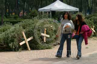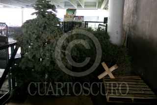 MÉXICO, D.F. 13ENERO2010.- Árboles de Navidad secos son dejados en un centro de acopio ubicado en el estacionamiento de un centro comercial. FOTO: RODOLFO ANGULO/CUARTOSCURO.COM