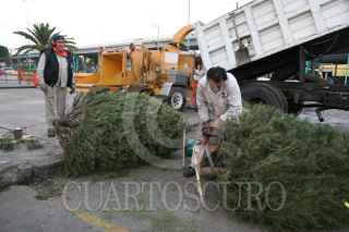 MÉXICO, D.F. 13ENERO2010.- Árboles de Navidad secos son dejados en el centro de acopio de la delegación Venustiano Carranza y a cambio las personas reciben un árbol o una bolsa de composta. FOTO: GUILLERMO PEREA/CUARTOSCURO.COM