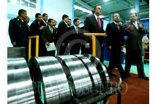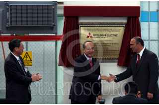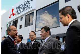 SAN JUAN DEL RIO, QUERETARO, 14ENERO2010.- Felipe Calderon, Presidente de Mexico, asistio a la nueva planta ensambladora Mitsubishi Electric de Mexico. FOTO: ALFREDO GUERRERO/CUARTOSCURO.COM