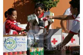 MÉXICO, D.F., 14ENERO2010.- Cientos de personas acuden al centro de acopio que se ubica en la sede la Cruz Roja en donde llevan víveres y ayuda paraa damnificados del terremoto de 7 grados en la escala de Richter que azoto este país. FOTO: RODOLFO ANGULO/CUARTOSCURO.COM