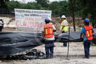 CANCUN, QUINTANA ROO, 14ENERO2010.- Personal de la Procuraduría Federal de Protección al Ambiente (Profepa), colocó sellos de clausura a las obras de desmonte que lleva a cabo en ese sitio Grupo Indi, que ganó la licitación del Ayuntamiento de Benito Juárez para edificar el llamado Gran Parque Bicentenario en la Plaza Bicentenario es el principal proyecto del alcalde Gregorio Sánchez. Incluirá una nueva alcaldía, una catedral y un parque con una pista de hielo simulado. FOTO: AMARANTA PRIETO/CUARTOSCURO.COM
