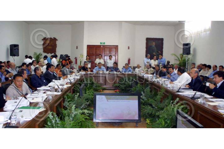 Protesta frente a la casa de cultura donde se reunen los Gobernadores durante la Segunda Reunión Extraordinaria de la CONAGO. FOTO: Juan Sotelo/CUARTOSCURO.COM