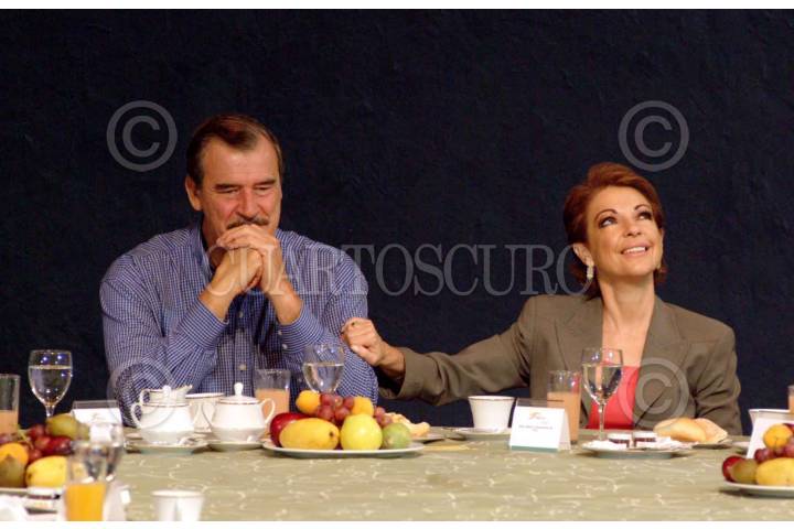 Adriana Fernández, Rommel Pacheco, el "Bofe" y Nancy Contreras, medallistas en los juegos Panamericanos de Santo Domingo, al termino del desayuno en los Pinos en donde el presidente Fox se comprometió a dar más apoyos a los deportistas. FOTO: Nelly Salas/CUARTSOCURO.COM