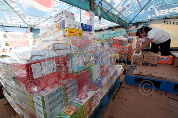 OAXACA, OAXACA 15ENERO2010.- Durante el segundo día de colecta de víveres de la Cruz Roja para la ayuda a los pobladores de Haití, el organismo en Oaxaca reportó una importante respuesta por los ciudadanos, quienes hasta el momento tan solo en las oficinas de Armenta y López en el centro de la ciudad, han dejado una tonelada de alimento y productos desechables. FOTO: MAX NÚÑEZ/CUARTOSCURO.COM