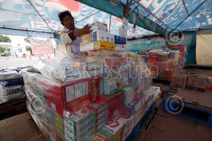 OAXACA, OAXACA 15ENERO2010.- Durante el segundo día de colecta de víveres de la Cruz Roja para la ayuda a los pobladores de Haití, el organismo en Oaxaca reportó una importante respuesta por los ciudadanos, quienes hasta el momento tan solo en las oficinas de Armenta y López en el centro de la ciudad, han dejado una tonelada de alimento y productos desechables. FOTO: MAX NÚÑEZ/CUARTOSCURO.COM