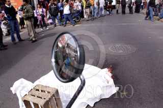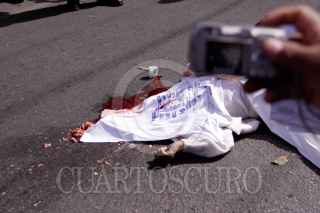 OAXACA, OAXACA 15ENERO2010.- La falta de prudencia de quien conduce, ocasiono que este medio día perdiera la vida una mujer de la tercera edad, misma que fue arrollada por una unidad de trasporte urbano en la esquina de Francisco Javier Mina y Gustavo Díaz Ordaz, importante cruce perteneciente al centro de la ciudad,siendo esta la primer victima del año que cobra el transporte urbano. FOTO: MAX NÚÑEZ/CUARTOSCURO.COM