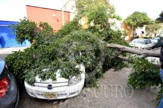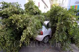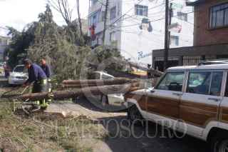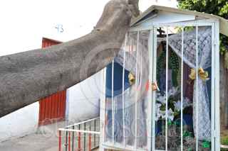 MÉXICO, D.F., 15ENER02010.- Un árbol cayó sobre dos vehículos y un altar de la Virgen de Guadalupe, debido a los fuertes vientos que se registran en la ciudad de México. Los hechos ocurrieron en el cruce de las calles Tercera Cerrada de Mina y Mina en la colonia Guerrero. FOTO: LUIS CARBAYO/CUARTOSCURO.COM