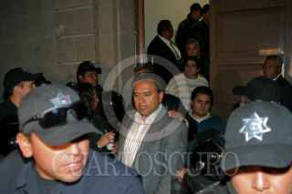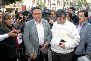 MÉXICO D.F., 15ENERO2010.- Martín Esparza, lider del Sindicato Mexicano de Electricistas (SME) a su salida de la Secretaria de Gobernación en donde se reunio con un grupo de funcionarios encabezados por Jerónimo Gutiérrez, subsecretario de Gobierno y en donde acordaron reunirse una vez por semana para analizar los puntos presentados por los electricistas como demandas al gobierno. FOTO: RODOLFO ANGULO/CUARTOSCURO.COM