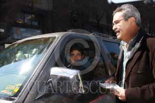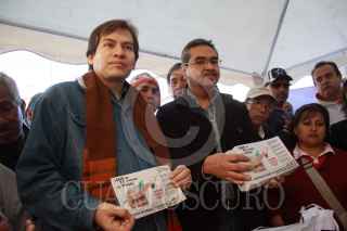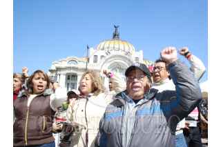 MÉXICO, D.F. 16ENERO2010.- Decenas de ex trabajadores de luz y fuerza inicieron esta mañana una campaña de difusión para no pagar el servicio eléctrico, encabezados por Manuel Oropeza Morales,y Agustin Guerrero. FOTO: SÁSHENKA GUTIÉRREZ/CUARTOSCUO.COM