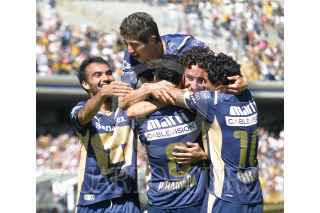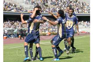 MÉXICO, D.F., 17ENERO2010.- Pablo Barrera, jugador de los Pumas de la UNAM, festeja su segunda anotación contra el Atlas del Guadalajara; encuentro que ganaron los Pumas 2 goles a 0 en el estadio Olímpico Universitario del torneo Bicentenario del fútbol mexicano. FOTO: RODOLFO ANGULO/CUARTOSCURO.COM