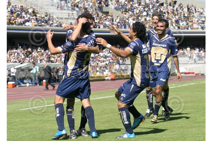 MÉXICO, D.F., 17ENERO2010.- Pablo Barrera, jugador de los Pumas de la UNAM, festeja su segunda anotación contra el Atlas del Guadalajara; encuentro que ganaron los Pumas 2 goles a 0 en el estadio Olímpico Universitario del torneo Bicentenario del fútbol mexicano. FOTO: RODOLFO ANGULO/CUARTOSCURO.COM