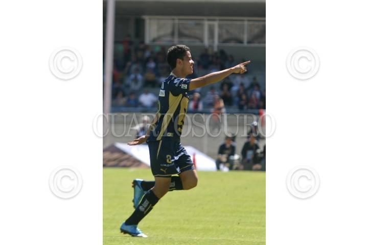 MÉXICO, D.F., 17ENERO2010.- Pablo Barrera, jugador de los Pumas de la UNAM, festeja su segunda anotación contra el Atlas del Guadalajara; encuentro que ganaron los Pumas 2 goles a 0 en el estadio Olímpico Universitario del torneo Bicentenario del fútbol mexicano. FOTO: RODOLFO ANGULO/CUARTOSCURO.COM