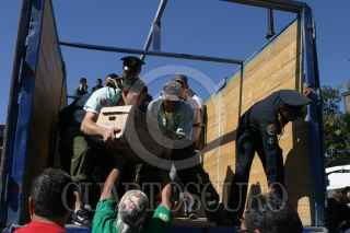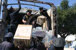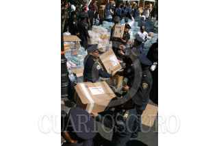 MÉXICO, D.F., 17ENERO2010.- Los víveres recolectados para ayudar a el pueblo haitiano que sufre por la destrucción que dejo un sismo de 7 grados richter, en el centro de acopio ubicado a un costado de la Catedral Metropolitana fueron transportados en dos camiones con destino a el aeropuerto en donde serán trasladados a la isla caribeña. FOTO: MOISÉS PABLO/CUARTOSCURO.COM