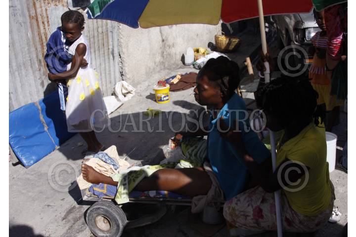 PUERTO PRÍNCIPE, HAITÍ, 17ENERO2010.- Un haitiano arrastra hacia la morgue del Hospital General el cuerpo de una persona muerta durante el sismo de 7 grados richter del pasado 12 de enero. Se calcula que el sismo dejó más de 150 mil muertos bajo los escombros en Haití y lo que las autoridades no han podido recogerlos a todos, por lo que aún hay cuerpos abandonados en diversos puntos de la capital. FOTO: ISAAC ESQUIVEL/CUARTOSCURO.COM