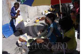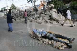 PUERTO PRÍNCIPE, HAITÍ, 17ENERO2010.- Un haitiano arrastra hacia la morgue del Hospital General el cuerpo de una persona muerta durante el sismo de 7 grados richter del pasado 12 de enero. Se calcula que el sismo dejó más de 150 mil muertos bajo los escombros en Haití y lo que las autoridades no han podido recogerlos a todos, por lo que aún hay cuerpos abandonados en diversos puntos de la capital. FOTO: ISAAC ESQUIVEL/CUARTOSCURO.COM