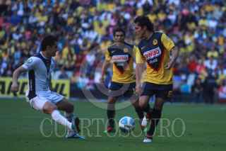 MÉXICO, D.F., 17ENER02010.- El americanista José Martínez, disputa el balon, durante el arranque en el Torneo Bicentenario 2010, jugado en la cancha del Estadio Azteca con un marcador final de 5-1 favor América. FOTO:SASHENKA GUTIERREZ/CUARTOSCURO.COM
