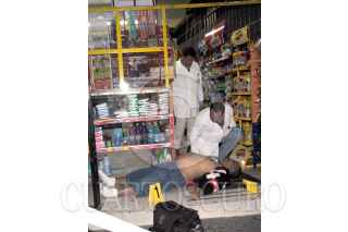 MÉXICO, D.F., 17ENERO2010.- Jaime Martín Martínez Salinas de aproximadamente 40 años, perdió la vida al recibir dos impactos de bala en el cuerpo tras resistirse a ser asaltado en la tienda que atendía de nombre "JR" en la esquina de la calle Camarón numero 22 esquina con calle Ostión en la colonia Caracol, perímetro de la Delegación Venustiano Carranza. Al lugar, arribaron peritos de esta demarcación para tomar conocimiento de los hechos y levantar el cadáver. FOTO: LUIS CARBAYO/CUARTOSCURO.COM
