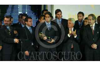 MÉXICO, D.F., 18ENERO2010.- Aldo Denigris, jugador de fútbol del club, Monterrey, recibió el Balón de Oro 2009 el cual honra la carrera de su hermano, Antonio denigris quien muriera en meses pasados por una complicación en el corazón. FOTO: ENRIQUE ORDÓÑEZ/CUARTOSCURO.COM
