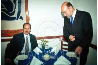Los presidentes de Acción Nacional, Luis Felipe Bravo Mena, y del Partido de la Revolución Democrática, Leonel Godoy, se reunieron a desayunar esta mañana en un restaurante en la Condesa, para dejar por el momento las diferencias y privilegiar coincidencias para impulsar el trabajo legislativo. FOTO: Eunice Adorno/CUARTOSCURO.COM