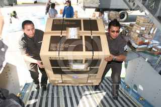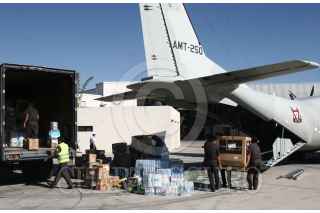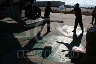 MÉXICO, D.F., 18ENERO2010.- Marinos cargan un avion caza 295 con viveres, medicinas y agua para damnificados en Haiti por el terremoto de 7.1 grados que azoto a la isla el pasado martes 12 de Enero. FOTO: SAÚL LÓPEZ/CUARTOSCURO.COM