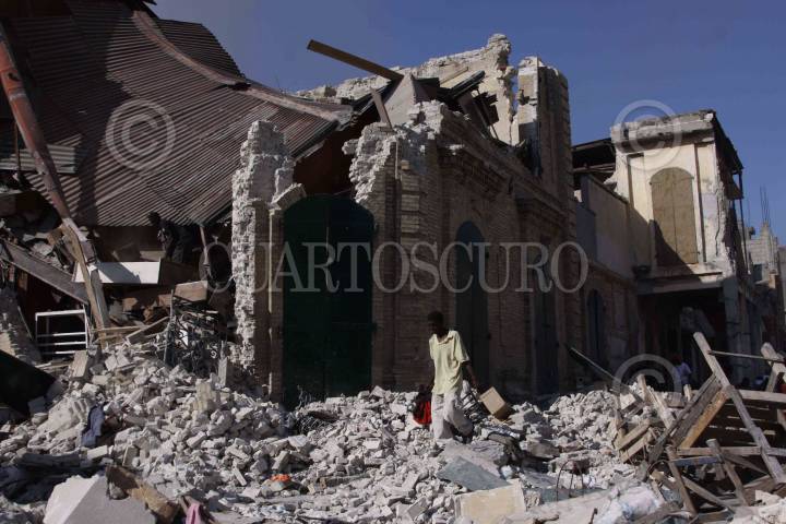 PUERTO PRÍNCIPE, HAITÍ, 18ENERO2010.- Haitianos buscan víveres o herramienta que los ayuden a subsistir en edificios y casas devastadas del centro de la ciudad luego de que el pasado martes 12 de enero un terremoto de 7 grados en escala de richter dejara en ruinas la mayor parte del país. FOTO: IVÁN STEPHENS/CUARTOSCURO.COM