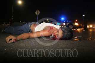 MÉXICO, D.F., 19ENERO2010.- Un hombre de aproximadamente 25 años murió al ser atropellado por varios vehículos en los carriles centrales del anillo Periférico Sur a la altura de avenida Insurgentes. El cuerpo aún no ha sido identificado. FOTO: LUZ ACEVEDO/CUARTOSCURO.COM