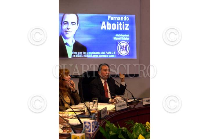 El líder del PAN Capitalino, José Luis Luege Tamargo, abandona la sala de plenos del Instituto Electoral del D.F. Luego de que este instituto declarara excesos en las campaña de Fernando Aboitiz para jefe delegacional en Miguel Hidalgo. FOTO: Juan Pablo Zamora/CUARTOSCURO.COM