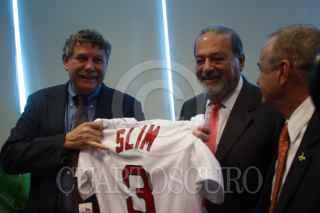 MÉXICO, D.F., 19ENERO2010.- El empresario Carlos Slim durante la conferencia de prensa donde se anunció la puesta en marcha la investigación sobre médicina genómica. FOTO: SÁSHENKA GUTIÉRREZ/CUARTOSCURO.COM