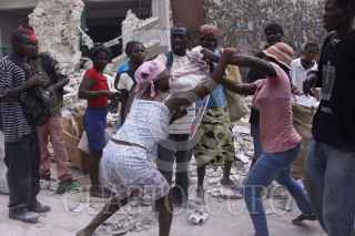PUERTO PRÍNCIPE, HAITÍ, 19ENERO2010.- Las peleas por víveres se ven por doquier durante los saqueos que se han suscitado en el centro de la ciudad. FOTO: IVÁN STEPHENS/CUARTOSCURO.COM