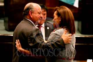 MÉXICO, D.F., 20ENERO2010.- Jesús Garibay García, senador del PRD conversa con Josefina Vázquez Mota, Diputada del PAN en la sesión de la comisión permanente. FOTO: CUARTOSCURO.COM