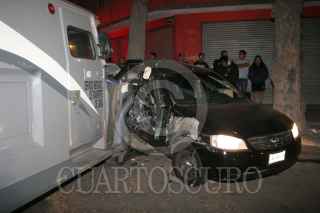 MÉXICO, D.F., 21ENERO2010.- Una camioneta de traslado de valores del Servicio Panamericano de Protección se paso la la luz roja del semáforo y embistió a un coche color negro con saldo de cuatro lesionados en el cruce de Isabel La Católica y Lorenzo Boturini en la colonia Obrera. FOTO: LUZ ACEVEDO/CUARTOSCURO.COM